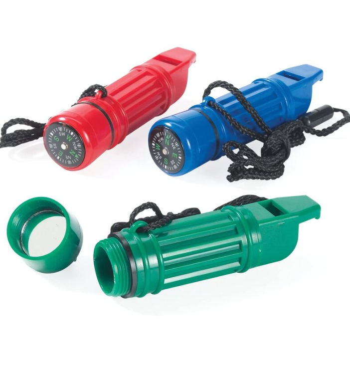 The Survival Compass is a 5-in-1 travel survival tool. Includes a compass and whistle, as well as a signal mirror and fire starter flint strip, and waterproof storage and lanyard outside. It’s lightweight and easy to hold. At only 4.5 inches long, this survival whistle is an essential addition to your emergency kit or survival gear.