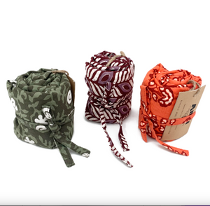 The screen-printed tote are 100% cotton and super spacious. Equipped with large straps so you can comfortably carry large loads. They also roll up for easy storage. Anju is donating one textbook to a school-going child in India for every reusable eco-bag that we sell.