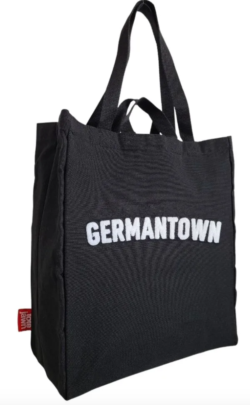 Poly cotton black canvas tote bag featuring double handles for you to carry in hand or on your shoulder. Inside pocket with reinforced piping, sewn side bag seams, and the signature tote jawn woven label on the back. These bags are hand-sewn by actual humans, slight size variations may occur between bags.