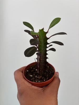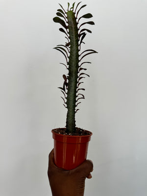 This succulent thrives in bright indirect light. They prefer watering when the soil has mostly dried out. Use caution when handling as the sap can be a skin irritant. They are native to Central Africa.