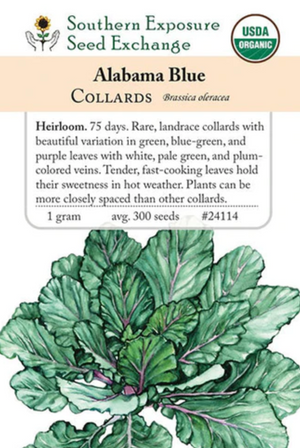 Landrace with wide variaton in beautiful leaf colors. Green, blue-green, and purple leaves with white, pale green, and plum-colored veins. Smaller leaves than most collards; plants can be more closely spaced. The leaves are more tender and faster to cook, and the plants hold their sweetness longer in hot weather.